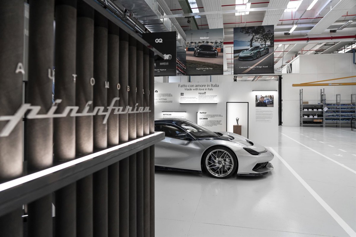 - El primer hiper GT eléctrico del mundo entra en producción en serie en un espacio dedicado en el corazón del centro de diseño, ingeniería y desarrollo de Automobili Pininfarina en Cambiano, Italia