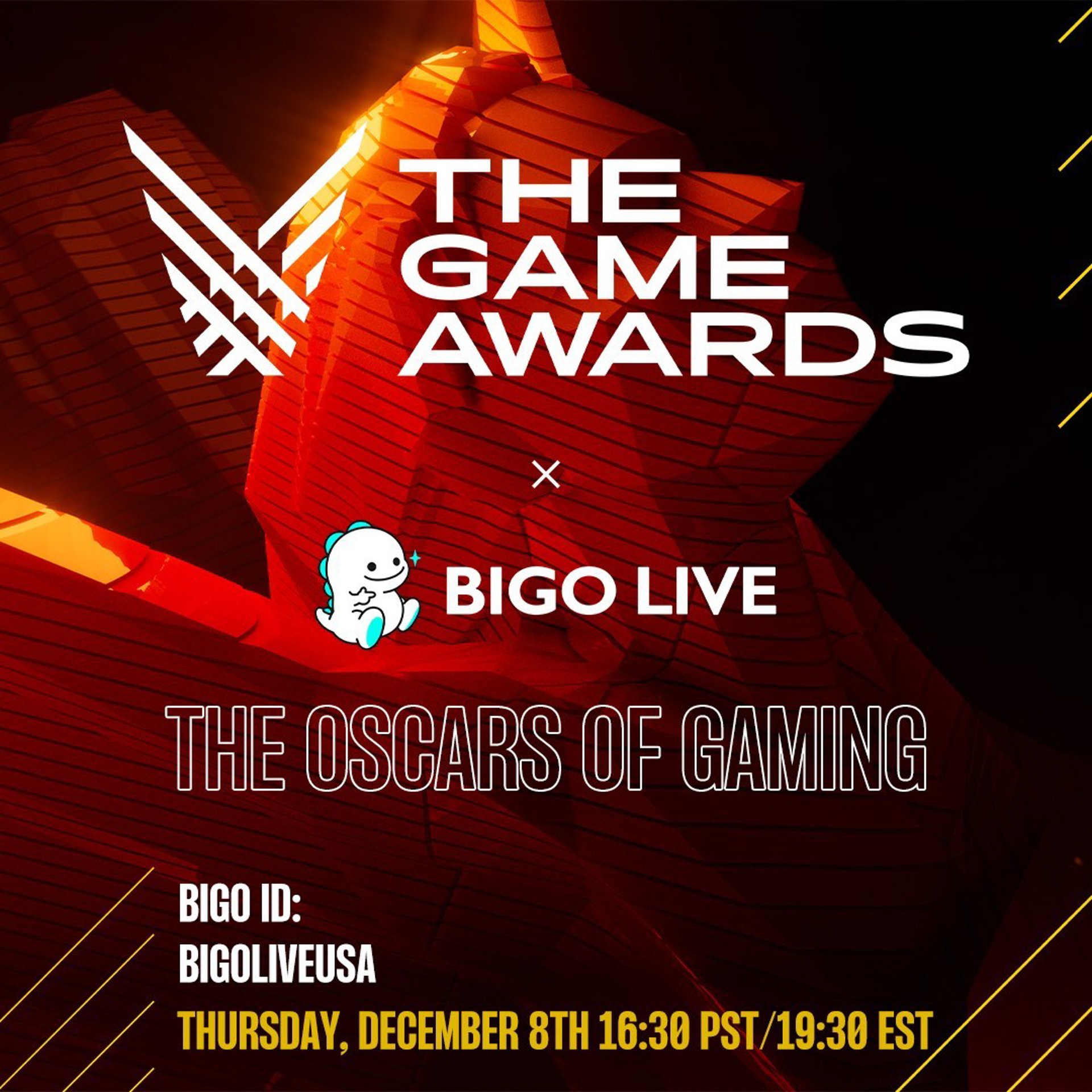LOS ÁNGELES, 2 de diciembre de 2022 /PRNewswire/ -- Bigo Live, la plataforma líder mundial de livestreaming, ha anunciado que es socio un oficial de streaming de The Game Awards 2022, que dará comienzo a las 16:30 PST del jueves 8 de Diciembre, y que se emitirá en directo desde el Microsoft Theatre de Los Ángeles.
