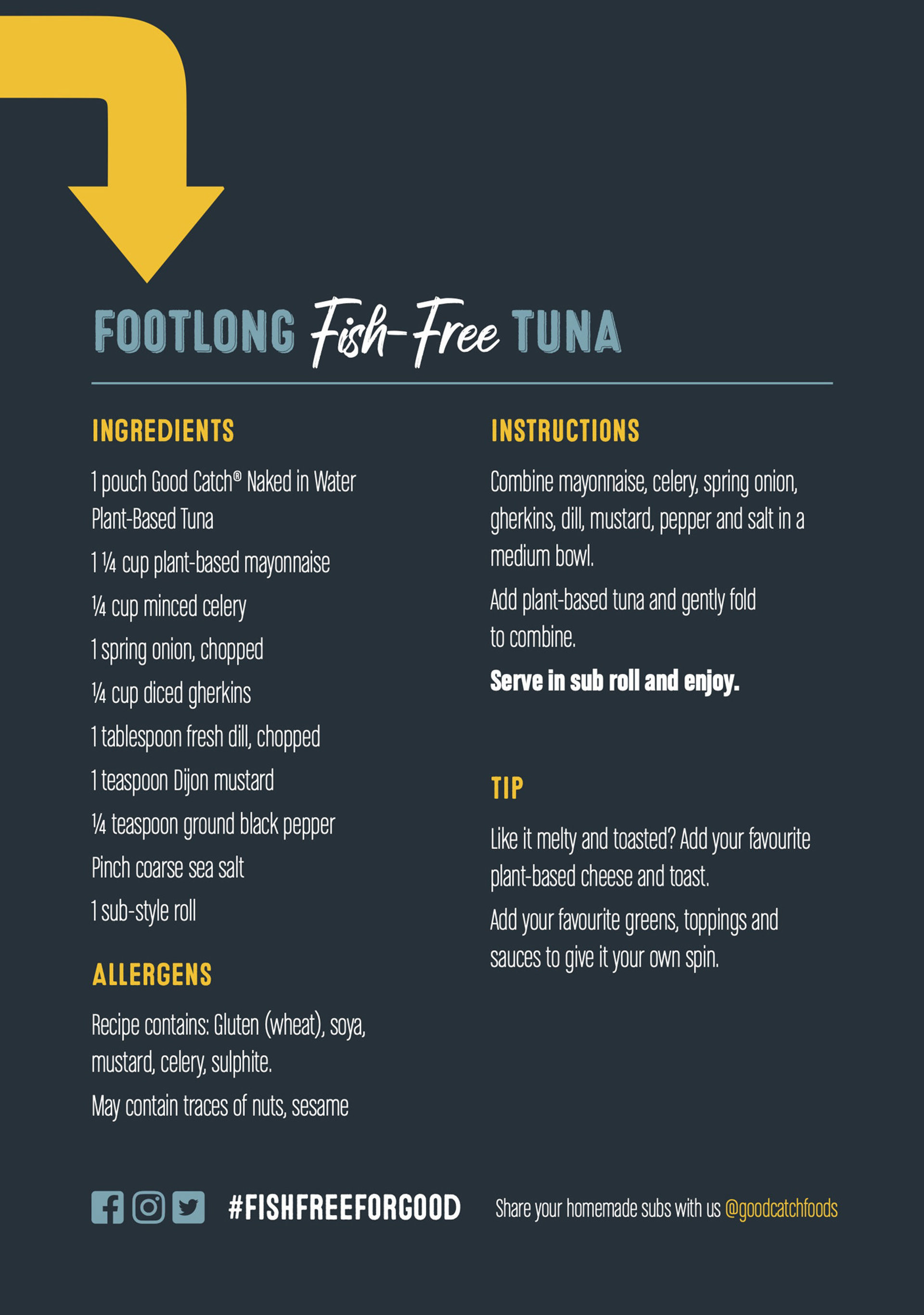 Good Catch OurWay recipe cards to make you own #FISHFREEFORGOOD sub at home - GOOD CATCH/PR NEWSWIRE