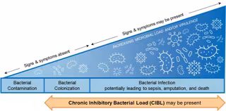 Chronic inhibitory bacterial load ("CIBL") on the bacterial-infection continuum. Based on the International Wound Infection Institute (IWII) 2022 wound infection continuum - MOLECULIGHT INC./PR NEWSWIRE