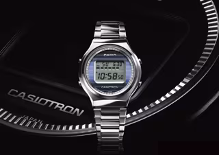El exterior del reloj original, incluido su tamaño, se recrea meticulosamente en un diseño que cumple los estándares de calidad actuales. Se han reproducido fielmente numerosos detalles, como las sofisticadas texturas de la caja y la correa, la esfera azul oscuro y el logotipo de CASIOTRON.