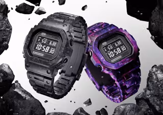 El diseño combina el compromiso interminable de G-SHOCK con la innovación con imágenes inspiradas en la insondable e infinita extensión del espacio exterior con un motivo inspirado en el Big Bang y los planetas galácticos. La línea de dos modelos ofrece la posibilidad de elegir entre morado, con molduras de colores mixtos con motas de ópalo,[*2 y negro básico.