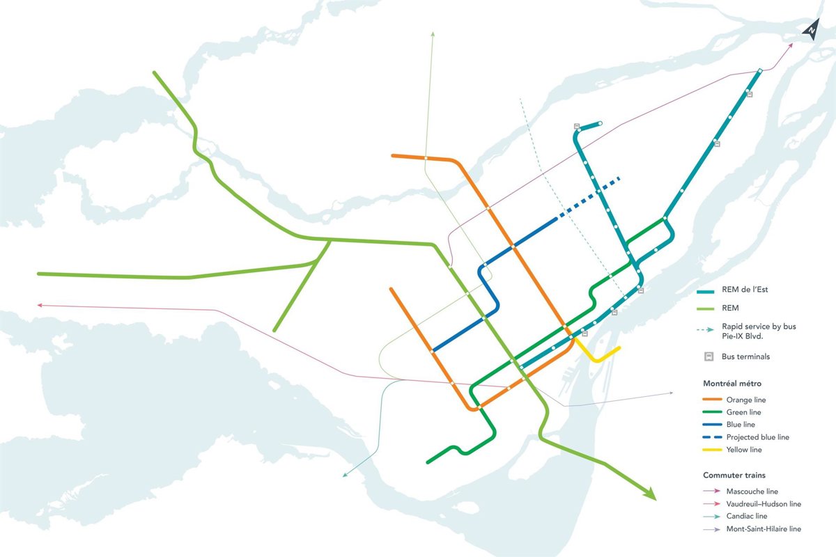 Mientras el proyecto REM está en marcha, el anuncio al mercado para la segunda fase, REM de l'Est, se lanza ahora para permitir que el mercado se prepare adecuadamente para las diversas etapas del proceso de contratación de este proyecto a gran escala. REM de l'Est es un proyecto de transporte público de metro ligero eléctrico integrado y totalmente automatizado, con 32 kilómetros de vía y 23 nuevas estaciones previstas, cuyo objetivo es crear nuevas conexiones rápidas y eficaces entre el centro de Montreal y los residentes de los barrios del este y el noreste de la ciudad. Este proyecto, anunciado en diciembre de 2020, se encuentra todavía en la fase de planificación detallada: quedan por completar varias etapas importantes. Está previsto que la construcción comience en 2023 y la primera puesta en marcha en 2029.