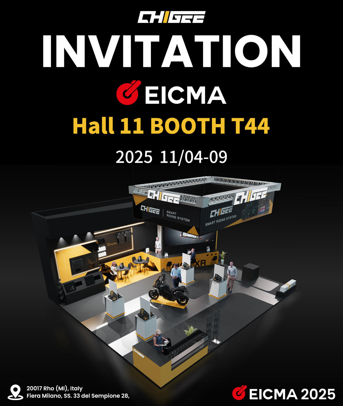 Evento: EICMA 2025Fechas: 4–9 de noviembreLugar: Fiera Milano, SS.33 del Sempione 28, 20017 Rho, Milán, ItaliaExpositor: Hall 11, T44