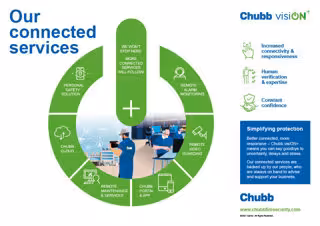 "Estamos encantados de anunciar el lanzamiento de nuestra oferta Chubb visiON+, que se basa en muchos años de experiencia como proveedor líder de servicios de seguridad e incendios y refleja nuestra creencia de que los servicios remotos proporcionan la protección más eficaz contra una gran cantidad de desafíos de seguridad e incendios hoy en día", dijo Anthony Brennan, presidente de Chubb. "Cuando se combina con la amplia experiencia de Chubb, la mejora de la conectividad y la capacidad de respuesta que ofrece esta gama de servicios ayudará a nuestros clientes a mejorar la seguridad de sus edificios y ocupantes en todo el mundo."