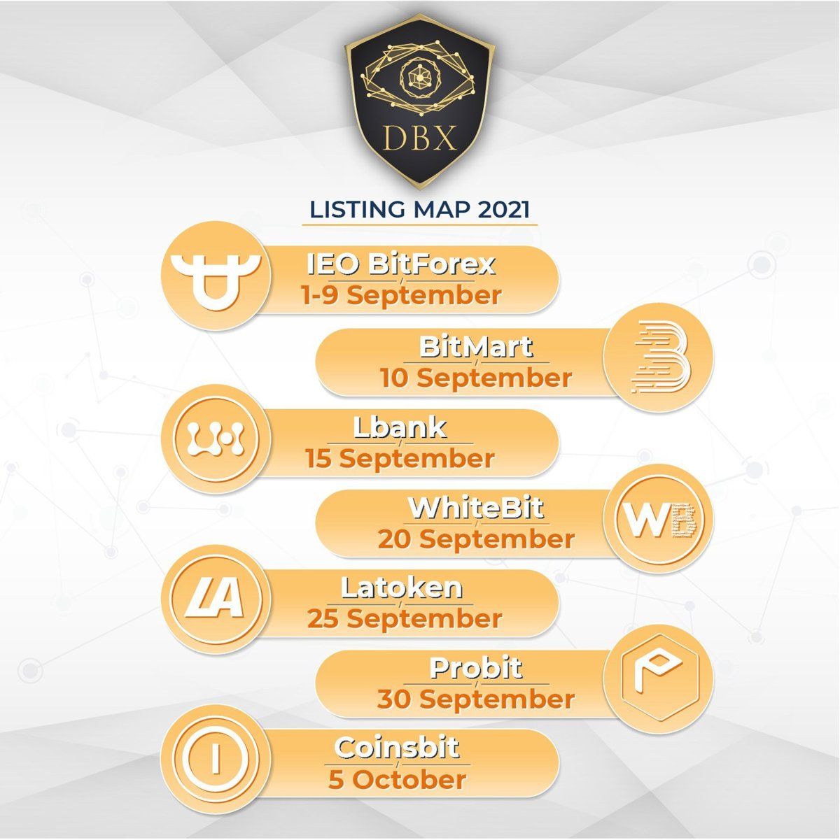 Así pues, el token DBX aparecerá en la bolsa del 1 al 5 de septiembre de 2021. El servicio en línea para la primera colocación de monedas será Bitforex, una de las principales plataformas de comercio en el mundo de las criptomonedas.