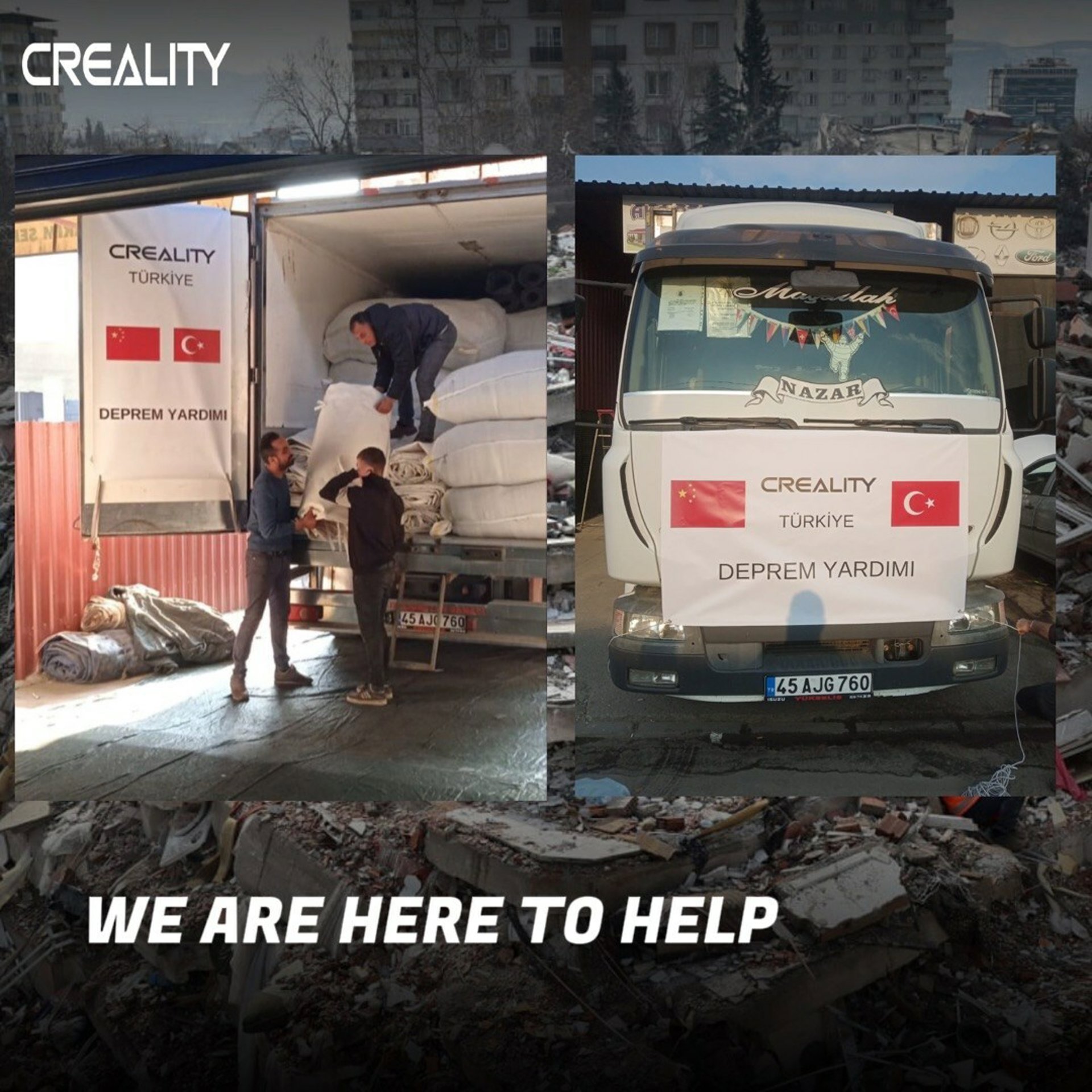Junto con Genix, un proveedor líder de soluciones de impresión y el principal distribuidor de Creality en Turquía, Creality ha donado alrededor de 1.500 kits de suministros de emergencia que incluyen tiendas de campaña y mantas a las regiones afectadas a través de la Asociación Ahbap, una organización no gubernamental fundada por el músico y filántropo turco Haluk Levent. . Todos los suministros se enviaron al almacén de recuperación de la comunidad de Aahbap en Osmaniye, en el sur de Turquía, el 26 de febrero y se distribuirán a las aldeas circundantes según lo solicitado por la Autoridad Turca de Gestión de Desastres y Emergencias (AFAD).