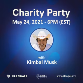 En un próximo evento benéfico que se celebrará el 24 de mayo de 2021, Kimbal Musk se unirá a Elongate en vivo en Twitch para discutir el increíble trabajo que Big Green y el Million Gardens Movement están haciendo para llevar educación al jardín y recursos de jardín a comunidades desatendidas en toda Norteamérica. Elongate donó 400.000 dólares estadounidenses a Big Green, una organización sin ánimo de lucro fundada por Kimbal Musk en 2011 para abordar las disparidades de salud relacionadas con la dieta y crear lugares saludables donde los niños puedan aprender y crecer. Este año Big Green co-lanzó el Million Gardens Movement con la publicación online de Modern Farmer para crear un movimiento social para liberar el poder de transformación de la jardinería para combatir el hambre, apoyar la acción climática y aumentar la resiliencia.