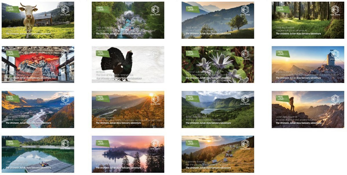 NFT (non-fungible token) es un token digital certificado, único e irrepetible emitido en edición limitada como recuerdo electrónico coleccionable único. La colección de NFT "The Ultimate Julian Alps Sensory Adventure", compuesta por quince NFT, se publicó en Vandri, una plataforma turística de NFT.
