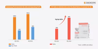 Daewoong Pharmaceutical (en adelante, Daewoong) ha superado por primera vez los 300.000 millones de KRW de ingresos trimestrales, gracias a los buenos resultados de exportación de la toxina botulínica Nabota, los tipos de cambio favorables y el crecimiento de productos de alto valor, como Fexuclue, que salió al mercado el pasado mes de julio.