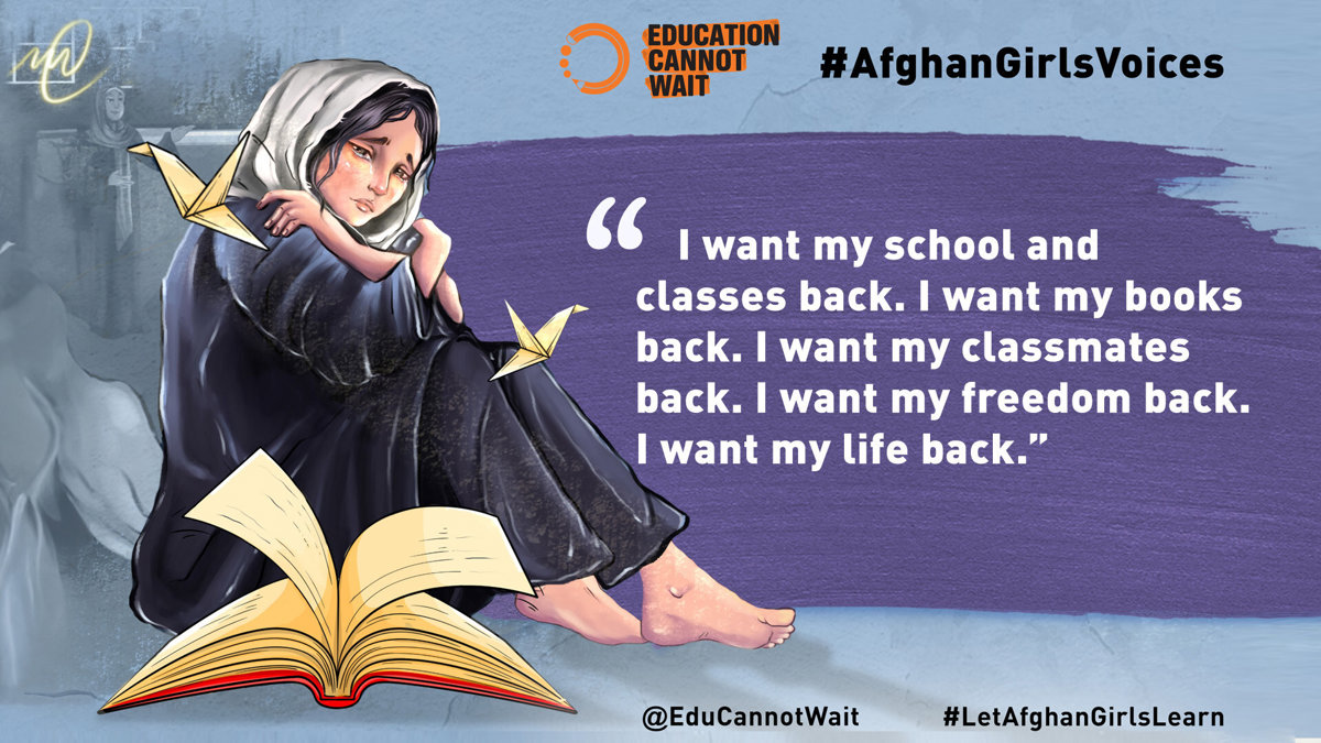 Today, more than 2.2 million Afghan girls are banned from attending school beyond primary school. Education Cannot Wait's Afghan Girls Voices Campaign is a clarion call to return girls to the safety, hope and opportunity of the classroom. - EDUCATION CANNOT WAIT/PR NEWSWIRE