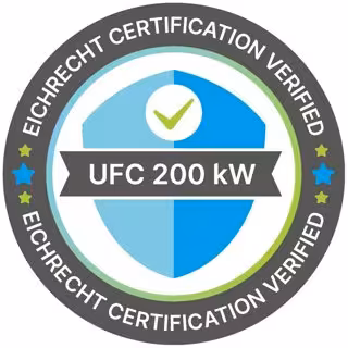 The UFC200 is equipped with a terminal for credit/debit-card payment and an integrated touchpad for PIN-entry. Under the German Weights and Measurement act, in order to sell energy to consumers, CPOs must operate certified EV chargers that include a calibrated energy metering system. Therefore, CPOs are increasingly demanding that EV chargers like UFC200 to include a calibrated energy metering system to be able to invoice consumers in a legal compliant method. Delta is one of the few manufacturers who has successfully complied with the German calibration law with its DC charging stations. In addition to Module B approval for the design, the certification also includes Module D for the production of Delta.