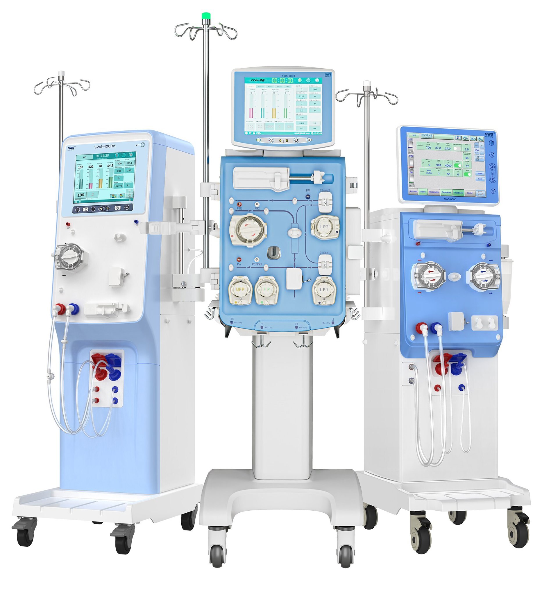 - La unidad SWS-5000 integra la terapia de reemplazo renal continuo (TRRC) con tecnologías avanzadas de hígado artificial e intercambio de plasma. Este dispositivo versátil ofrece una variedad de modalidades de tratamiento innovadoras, que incluyen el sistema de recirculación de adsorción molecular (MARS), la adsorción de filtración de plasma continua (CPFA) y la plasmaféresis de doble filtración (DFPP). Diseñado para brindar soporte multiorgánico, aborda de manera efectiva las necesidades complejas del riñón, el hígado, el corazón, los pulmones y más, lo que le asegura su estatus como la máquina de TRRC más vendida en China.