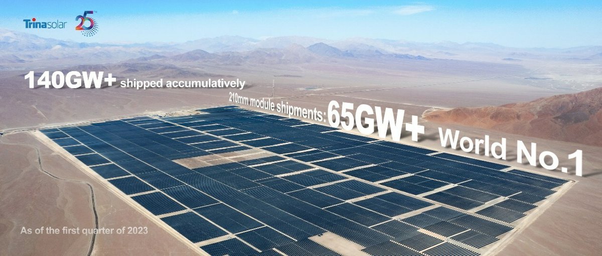-Los envíos acumulados de módulos de Trina Solar ascendieron a 140 GW, mientras que los envíos de módulos de 210 mm superaron los 65 GW en el primer trimestre de 2023, ocupando el primer lugar a nivel mundial