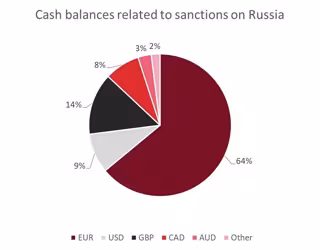 As per Euroclear's standard process, which is the same for any client's long cash balances, the cash balances arising from the sanctions are invested to minimise credit risk. Over Q1 2023, interest arising on cash balances from Russia-sanctioned assets was EUR 734 million.