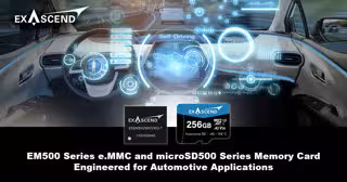 The Exascend EM500 e.MMC and microSD500 memory cards are to meet rising data storage demands of connected and autonomous vehicles. - EXASCEND/PR NEWSWIRE
