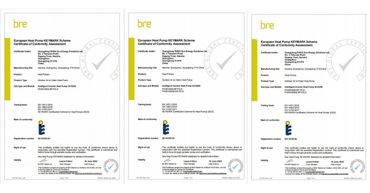 GUANGZHOU, China, 27 de junio de 2022 /PRNewswire/ -- Siendo el centro de atención en la industria de las bombas de calor, todos los modelos de bomba de calor PHNIX R290 - Serie GreenTherm han obtenido la certificación KeyMark. Hay que destacar que PHNIX es la primera empresa china que ha logrado conseguir la certificación KeyMark para bomba de calor R290.