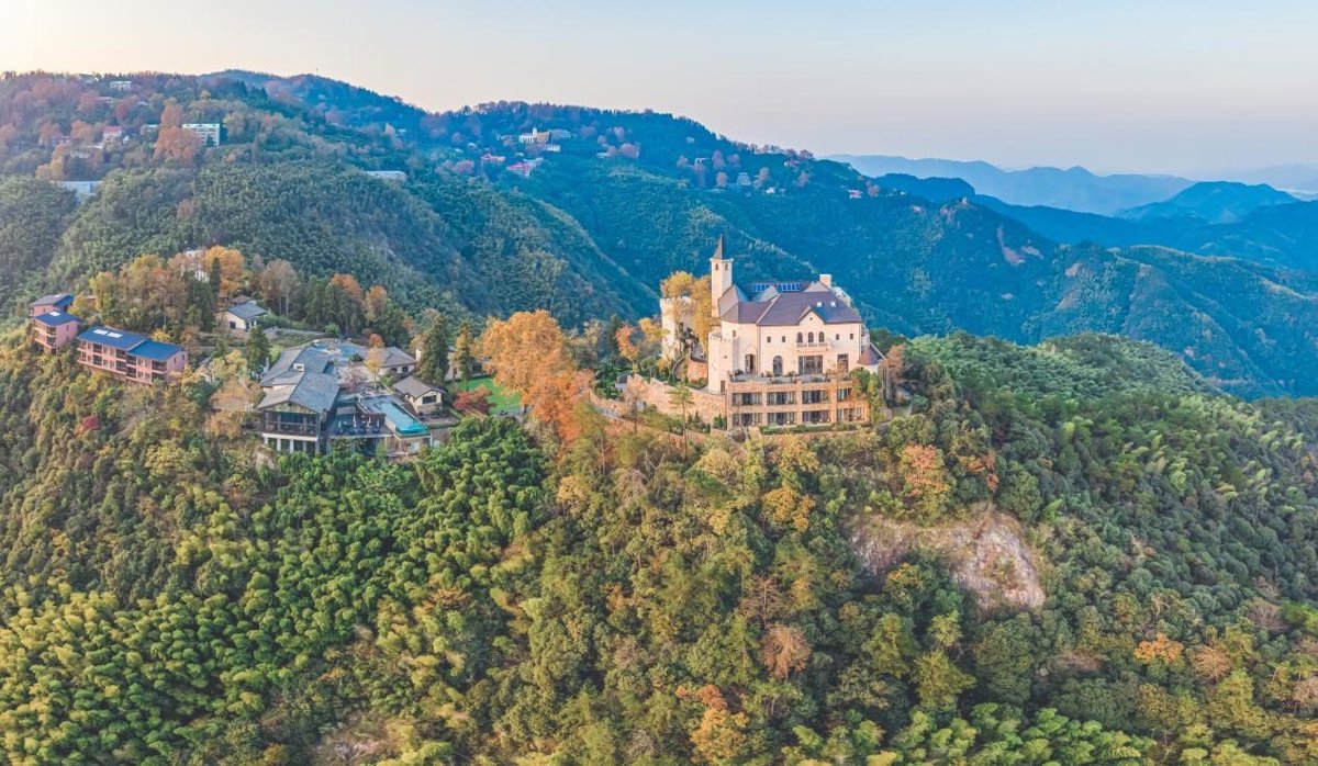 An aerial view of Naked Castle on Mogan Mountain in Deqing County, Huzhou City, east China's Zhejiang Province. - CHINA TOP BRANDS/PR NEWSWIRE