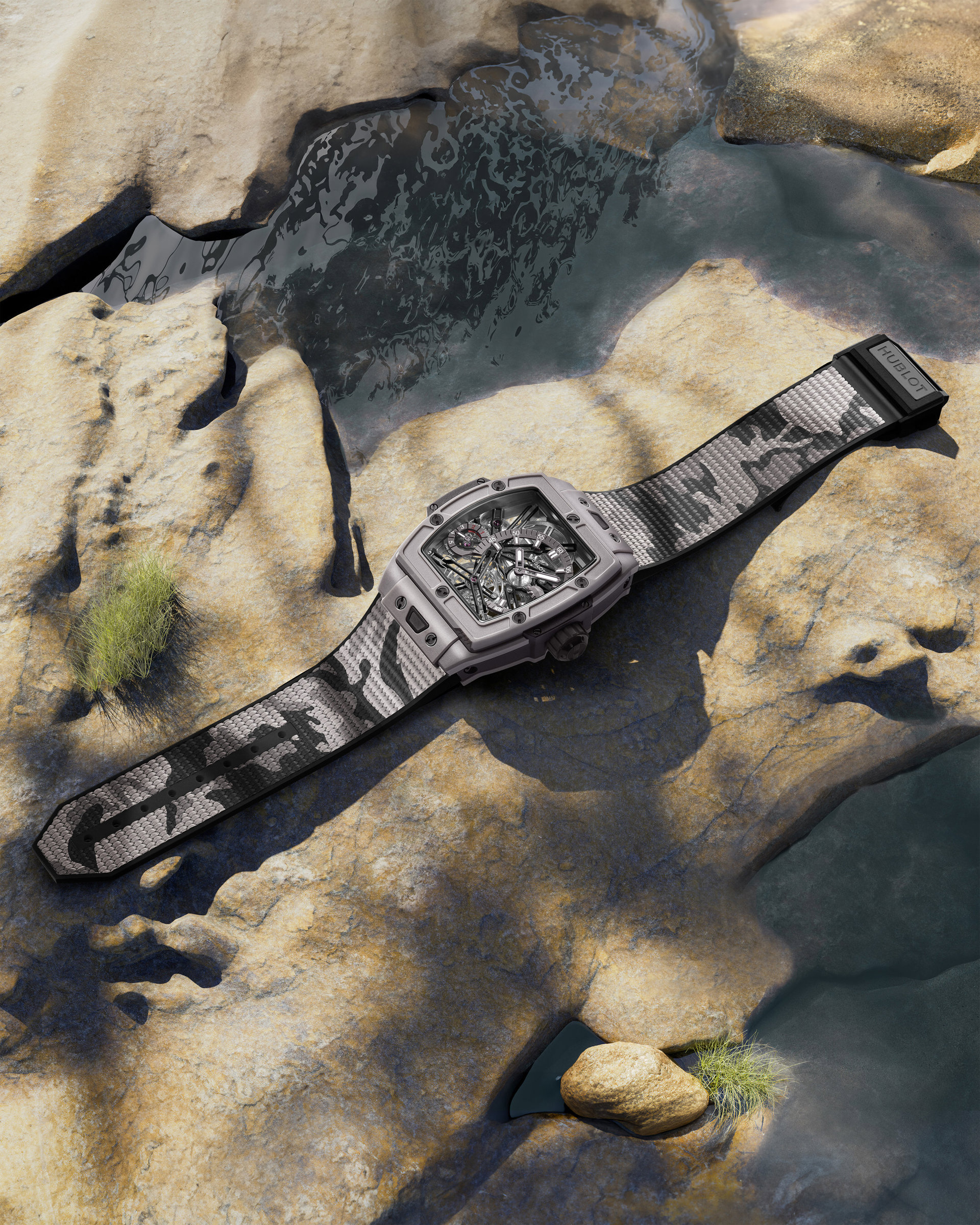 El Hublot Spirit of Big Bang SORAI es el cuarto reloj creado en apoyo de SORAI y el primer Spirit of Big Bang. Su caja de 42 mm está fabricada en la misma cerámica "gris cálido" pulida y microgranallada creada por Hublot para SORAI para capturar el color distintivo de la piel de un rinoceronte y vista por primera vez en el Big Bang Unico SORAI 2023. El reloj está equipado con una correa de tela gris y se entrega con una segunda correa de caucho negro con un llamativo patrón de camuflaje gris y beige. El reloj está equipado con el calibre de manufactura HUB6020, un tourbillon esqueletizado de cuerda manual con una reserva de potencia de cinco días. Proporciona al reloj una pantalla asimétrica que se encuentra suspendida entre dos cristales de zafiro y que equilibra delicadamente una visualización de la hora a las 3 en punto y un indicador de reserva de marcha entre las 8 y las 9 en punto. El Spirit of Big Bang SORAI estará limitado a 30 ejemplares.