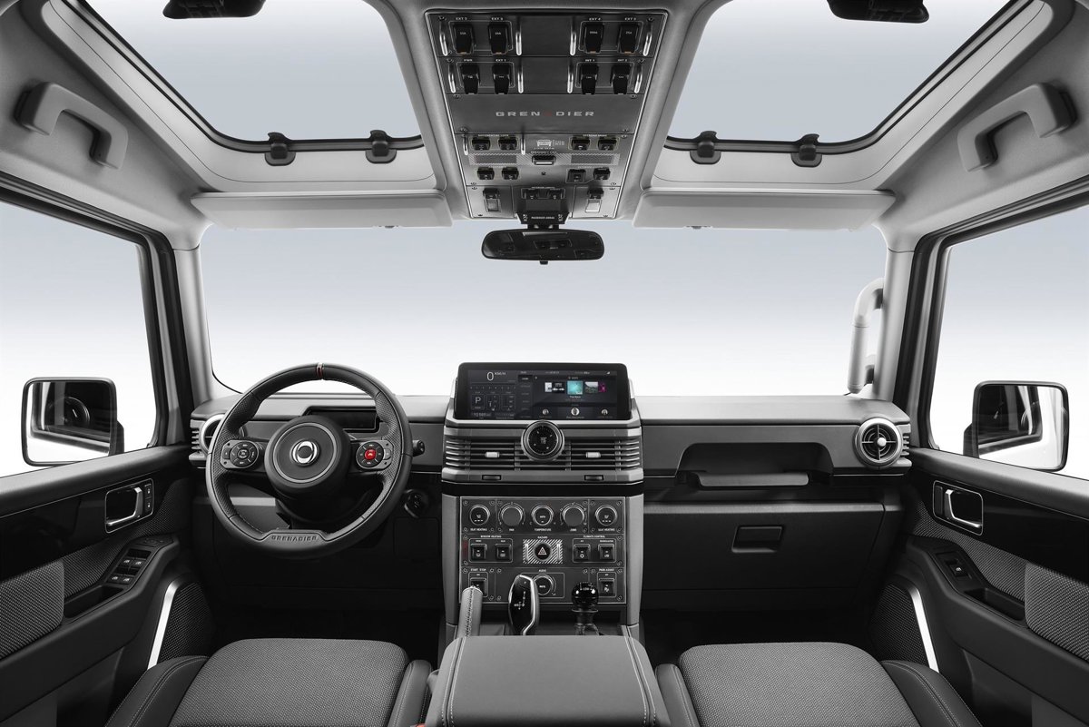 Cuando concebimos el interior del Grenadier, nos fijamos detenidamente en los aviones, los barcos e incluso los tractores de hoy en día en busca de inspiración. Allí encontramos que los interruptores están distribuidos para cumplir su función de forma óptima, de hecho, los controles normales están a mano mientras que los auxiliares están más lejos, comenta Toby Ecuyer, director de diseño. Se puede observar un enfoque similar en el Grenadier, en el que la disposición de los interruptores cumple una finalidad funcional y lógica que simplifica su uso. Todo lo necesario. Nada de lo prescindible.