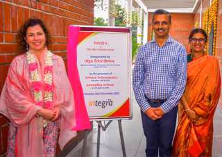 El nuevo edificio ecológico de Integra, que se ha comprometido a ser neutro en carbono para 2030, practica la sostenibilidad mediante el uso eficiente del agua, los materiales sostenibles y la energía renovable. Además, Sriram explicó cómo el edificio de oficinas de Integra en Pondicherry aprovecha al máximo la luz natural, recicla y reutiliza el agua ahorrando unos 10 millones de litros al año y recoge casi un millón de litros de agua de lluvia al año.