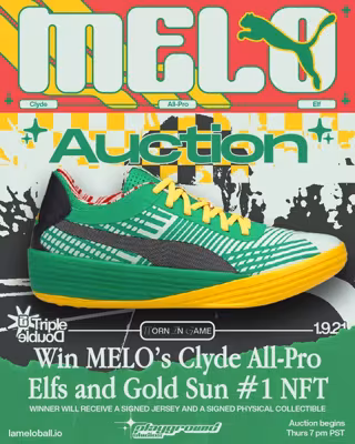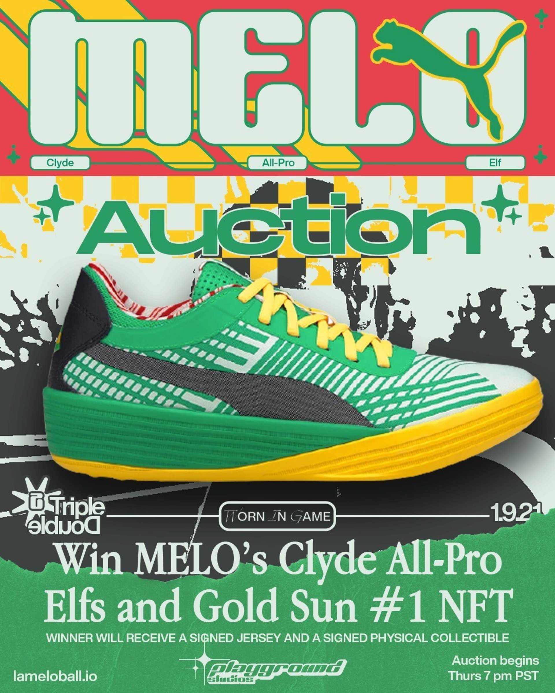 LOS ÁNGELES, 17 de junio, 2021 /PRNewswire/ -- El novato de la NBA LaMelo Ball subastará el par de zapatillas Puma Clyde All-Pro Elf autografiadas que se usaron el 9 de enero de 2021, la noche en que Ball se convirtió en el jugador más joven en la historia de la NBA en registrar un triple doble. La subasta está vinculada a su NFT GOLD SUN # 1, el token que se registrará permanentemente en la blockchain como el NFT más raro y el primero de Ball.