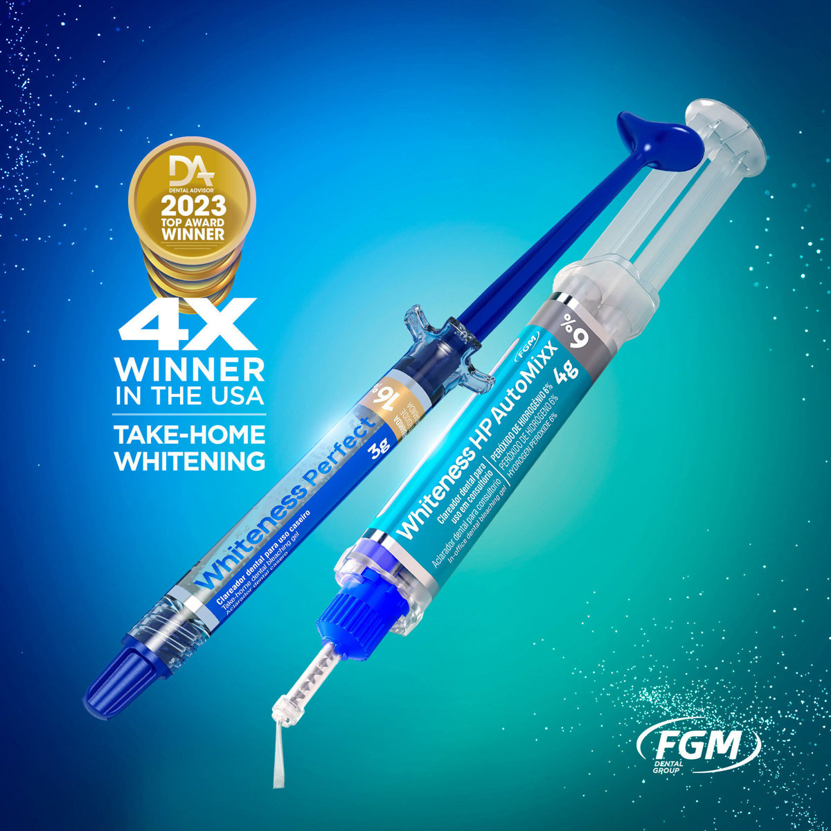 Una de las marcas líderes en el sector dental, FGM ofrece una amplia cartera para una amplia gama de técnicas de blanqueamiento. La línea Whiteness está en continuo desarrollo desde hace 30 años y actualmente está presente en más de 100 países, siendo líder en 15 de ellos. El lanzamiento más reciente es Whiteness HP Automixx gel blanqueador de peróxido de hidrógeno al 6% en el consultorio, que puede utilizarse en pacientes a partir de los 18 años, según la normativa europea para cosméticos. "Nuestro compromiso con el desarrollo de productos va desde la validación científica por parte de profesores de renombre y agencias reguladoras, hasta la disponibilidad comercial y el manejo, que aporta excelentes resultados como la facilidad de aplicación y el rendimiento", destacó la consejera delegada de FGM Dental Group, Bianca Mittelstdt.