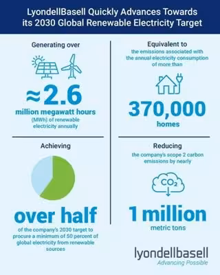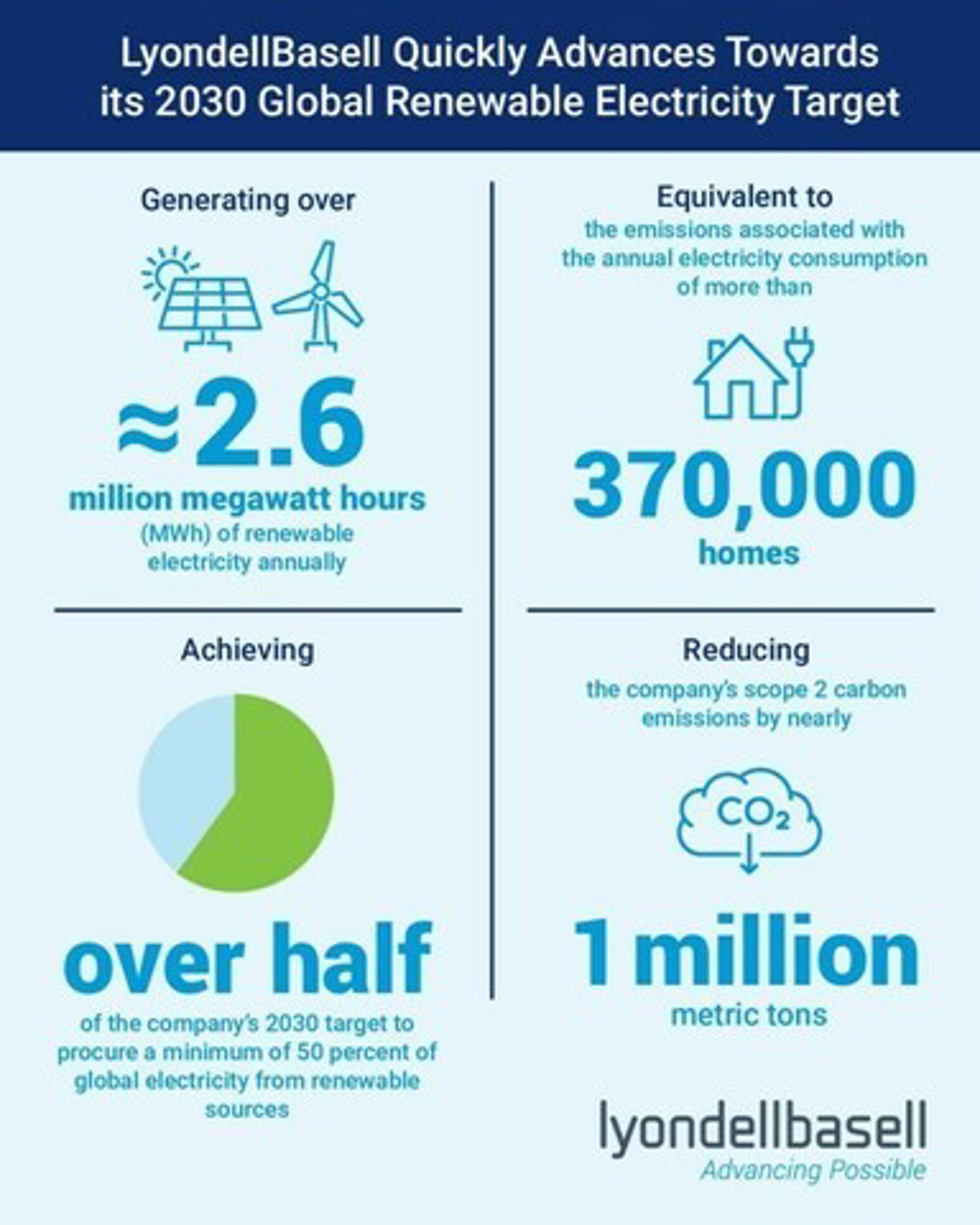 View original content:https://www.prnewswire.com/news-releases/lyondellbasell-avanza-rapidamente-hacia-su-objetivo-mundial-de-electricidad-renovable-para-2030-301737322.html