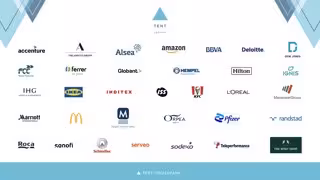 Las 33 empresas de Tent España abarcan diversos sectores y son las siguientes: Accenture, Adecco Group, Alsea, Amazon, BBVA, Deloitte, Dow Jones, FCC Medio Ambiente, Ferrer, Globant, Hempel, Hilton, Ignis, IHG Hotels & Resorts, IKEA, Inditex, ISS, KFC, L'Oréal Group, ManpowerGroup, Marriott International, McDonald's, Menzies Aviation, ORPEA, Pfizer, Randstad, Roca, Sanofi, Schindler, Serveo, Sodexo, Teleperformance y The Body Shop.