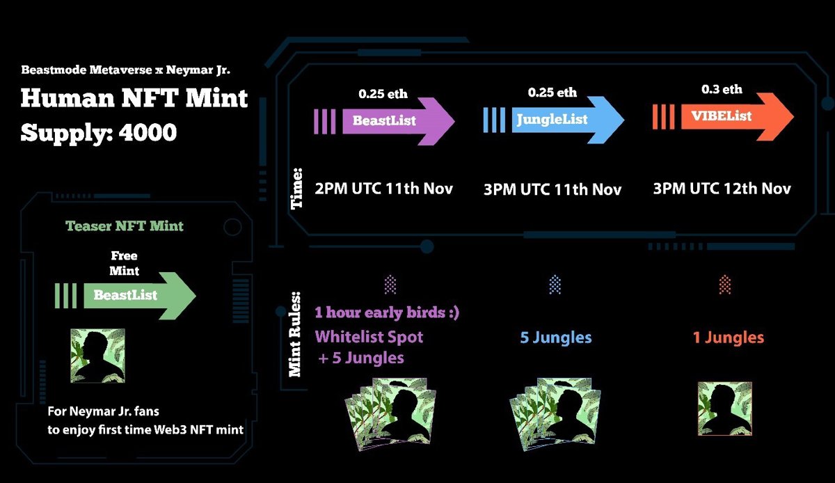 La colaboración hasta ahora ha sido un gran éxito, con la primera entrega de Beastmode Metaverse, llamada 'JungleVIBES', alcanzando más de 60.000 freemints en todo el mundo y llegando a una gran parte de la creciente base de fans de Neymar Jr.