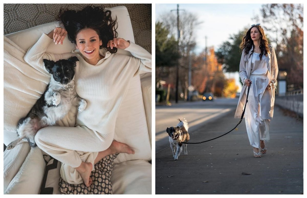 -Nina Dobrev lleva conjuntos elegantes y acogedores de LILYSILK mientras se acurruca con su perro Maverick en Instagram