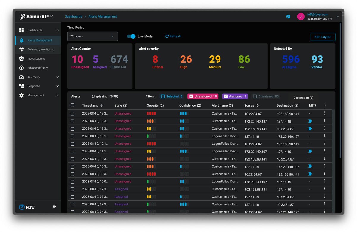 Samurai XDR SaaS interface in high resolution for detail - NTT SECURITY HOLDINGS/PR NEWSWIRE
