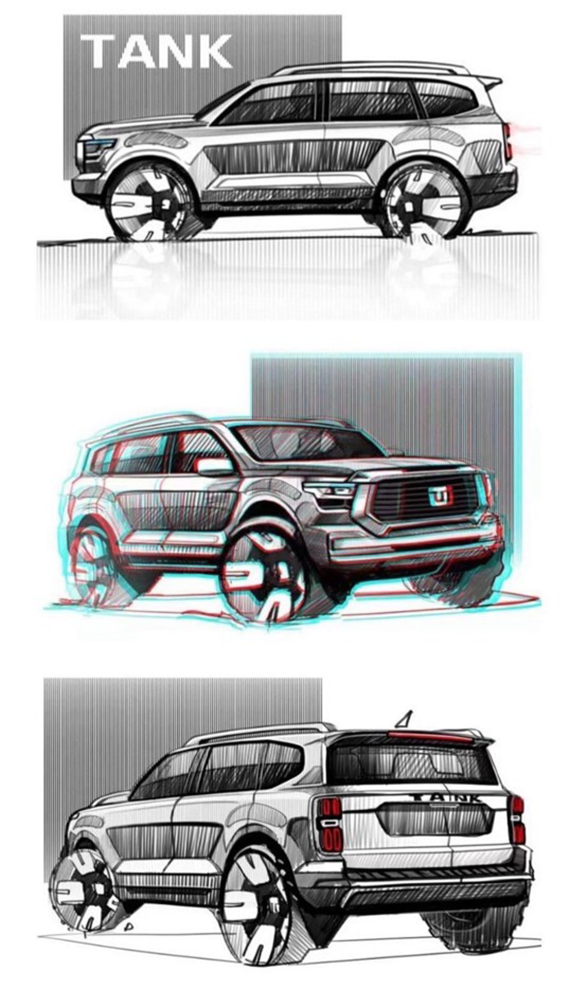 TANK "X" ha sido diseñado por Andrew Collinson, que ha trabajado para Land Rover, General Motors, Mercedes-Benz y otras empresas automovilísticas internacionales de primer nivel, y ha dirigido el diseño de muchos modelos de renombre mundial. Bajo su dirección, el aspecto duro del TANK "X" presenta un fuerte sentido del estilo clásico e internacional. El TANK "X" adopta un nuevo lenguaje de diseño de lujo empresarial, que es diferente del TANK 300, y ha desarrollado una nueva categoría de "lujo empresarial". Como se puede ver en el boceto, el nuevo coche adopta una rejilla de entrada de aire hexagonal, con una fuerte decoración cromada, y el logotipo TANK bien diseñado es llamativo y lleno de poder; el perfil es de corte limpio y musculoso; el diseño de la ventana trasera triangular hace que el vehículo esté lleno de dinamismo, y la forma limpia y concisa de la trasera, con una luz trasera dividida muy reconocible, muestra plenamente su estilo duro y lujoso, que se ajusta a la estética de la mayoría en la sociedad actual.