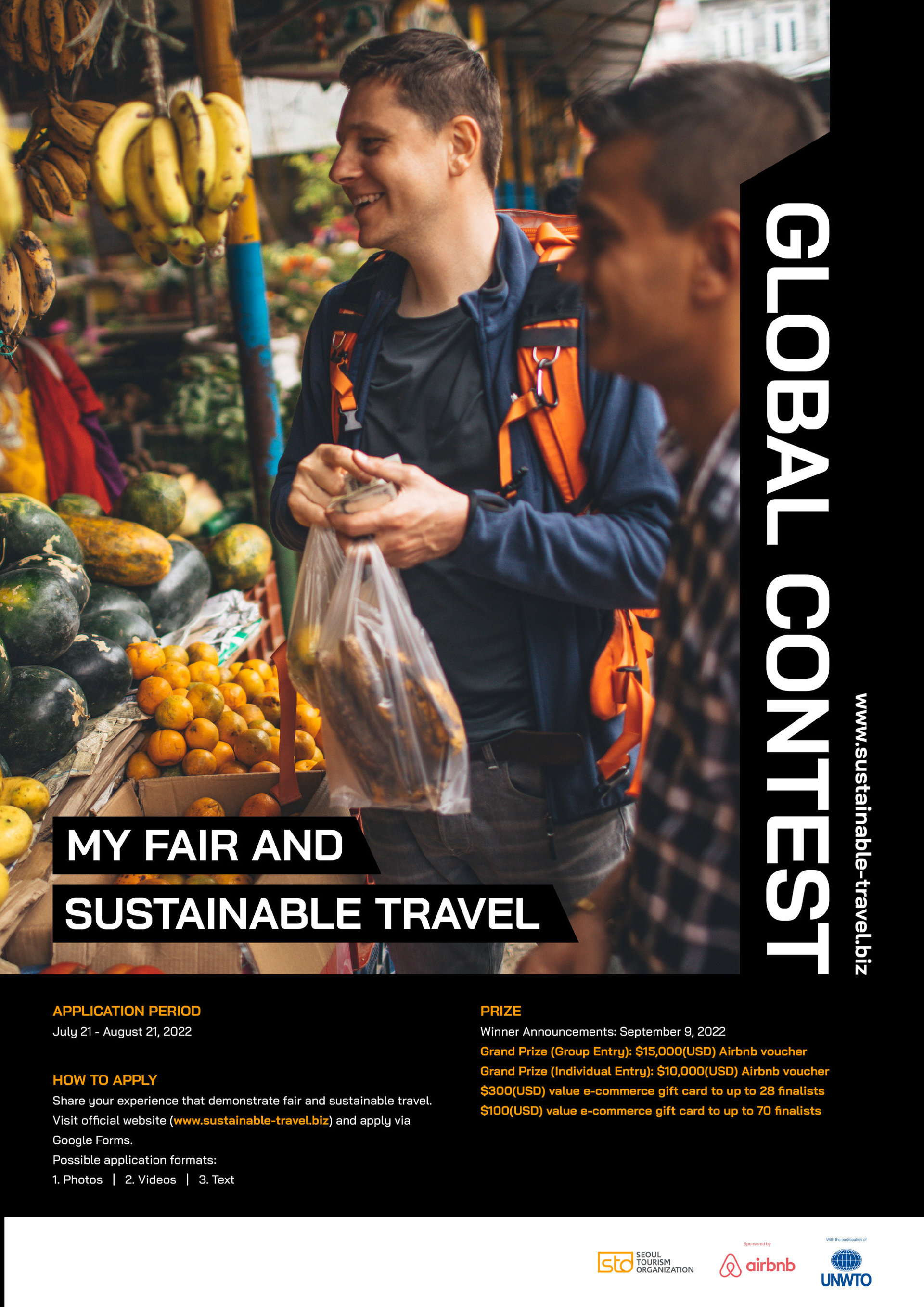 - Como no hay restricciones para unirse al concurso, los participantes de todo el mundo que hayan experimentado viajes justos y sostenibles pueden unirse a este concurso, y las solicitudes pueden ser enviadas no solo por individuos, sino también por organizaciones, como instituciones, escuelas, corporaciones, alojamientos, etc.