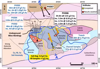 - Intersección de alta ley en el sondeo PVD06 (a menos de 20 m en vertical bajo la superficie);