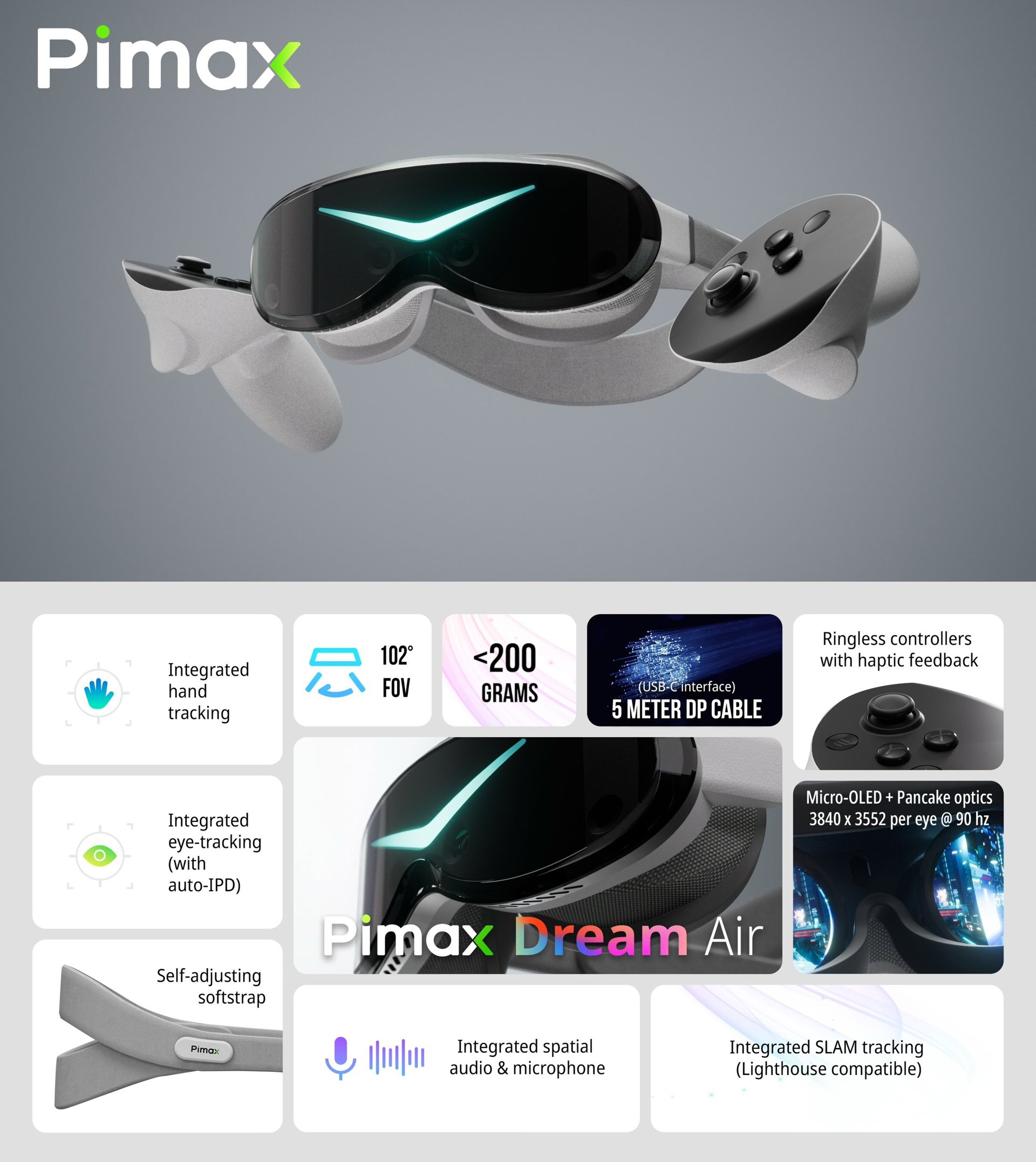 WILMINGTON, Del., 2 de enero de 2025 /PRNewswire/ -- Pimax, fabricante líder de hardware de realidad virtual, ha dado a conocer en una presentación online el diseño y las especificaciones de sus próximos auriculares, Pimax Dream Air. El pequeño y ligero auricular incorpora 27 millones de píxeles, seguimiento de la cabeza, las manos y los ojos, audio espacial integrado, conexión Display Port y una correa trasera autoajustable.