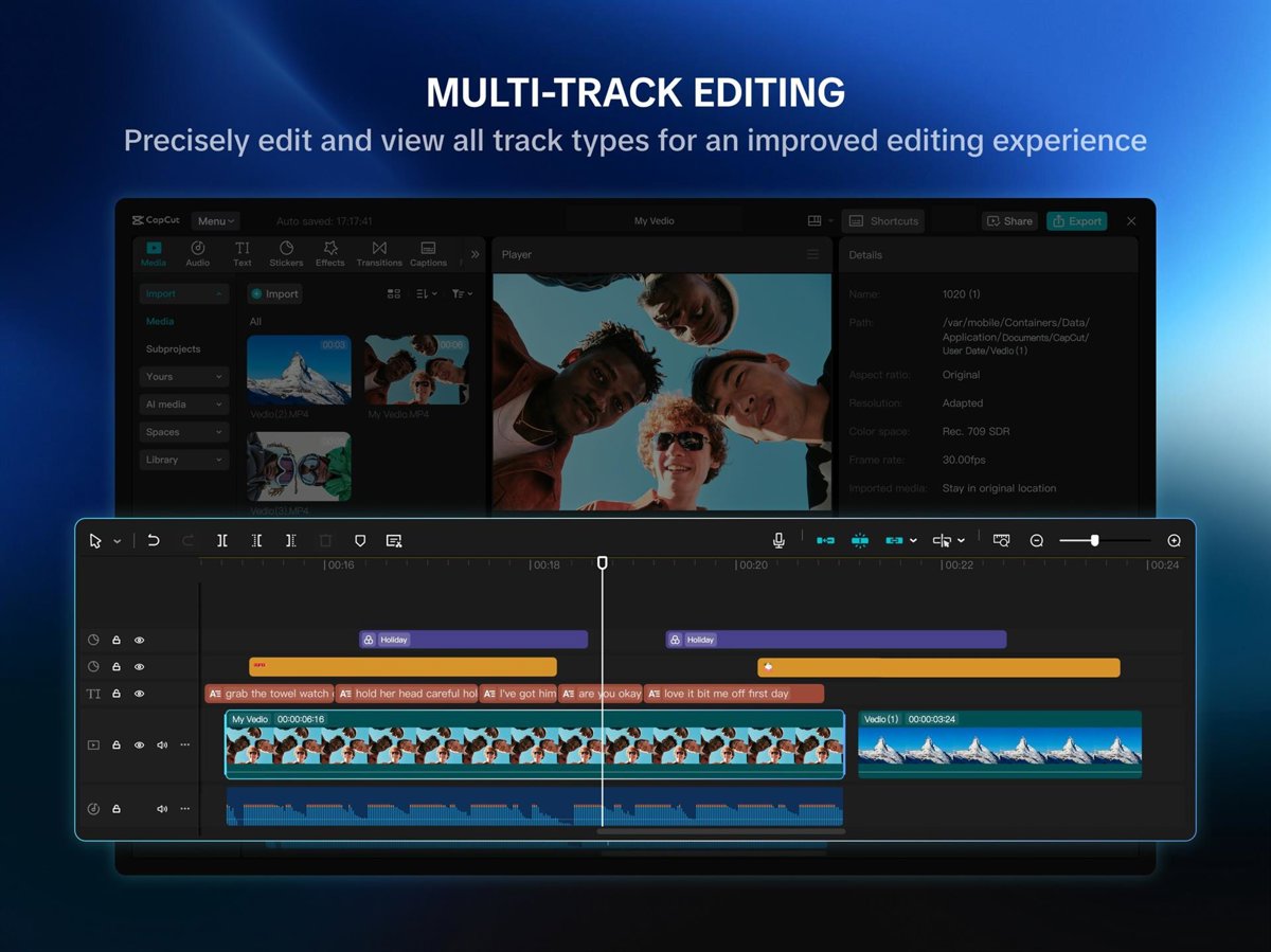 CapCut Pad ofrece a los usuarios de iPad un espacio de trabajo creativo completo, diseñado para la edición profesional multipista. Con una interfaz rediseñada y controles táctiles intuitivos, los creadores pueden superponer múltiples clips, refinar el audio, ajustar el color y trabajar con líneas de tiempo detalladas con facilidad, todo en un flujo de trabajo que se siente natural en iPad.