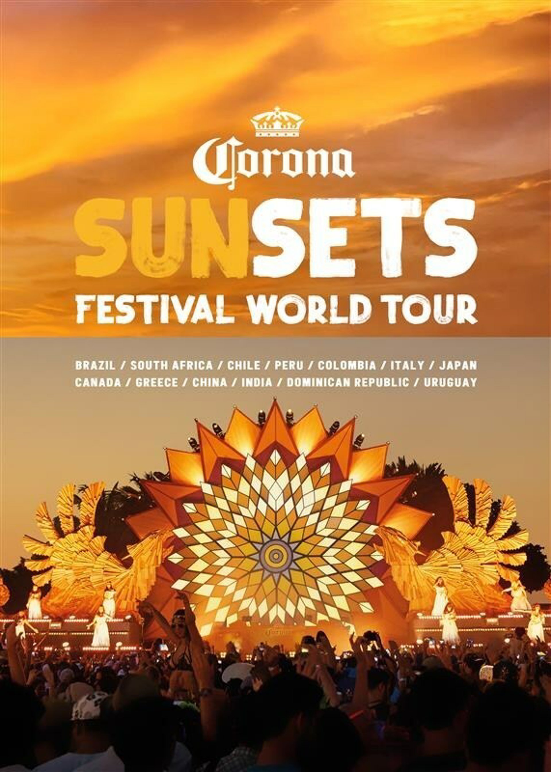 Para dar vida al Corona Sunsets Festival World Tour 2023, la marca se asoció con Fly South Music Group y socios locales en cada mercado del festival para construir sólidas alineaciones con músicos y DJs internacionales que actuarán mientras la puesta de sol ocupa el centro del escenario.