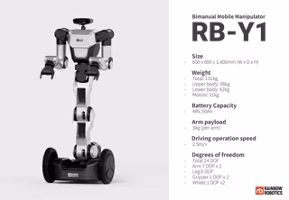 Korea's first bimanual mobile manipulator RB-Y1 spec - RAINBOW ROBOTICS/PR NEWSWIRE
