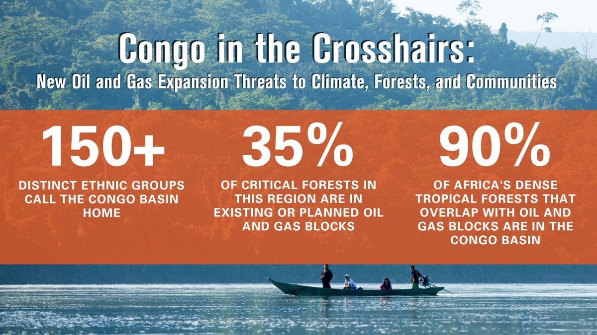 - Los bloques de exploración de petróleo y gas se solapan con el 30% de los bosques tropicales densos de África, de los cuales el 90% están en la cuenca del Congo.