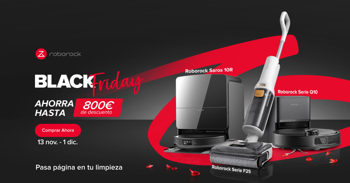 - El Roborock Saros 10R con un precio original de 1499,99€, podrá conseguirse desde hoy, 13 de noviembre, y hasta el 1 de diciembre con un descuento del 40%, por 899,99€. (Link Amazon y web Roborock).