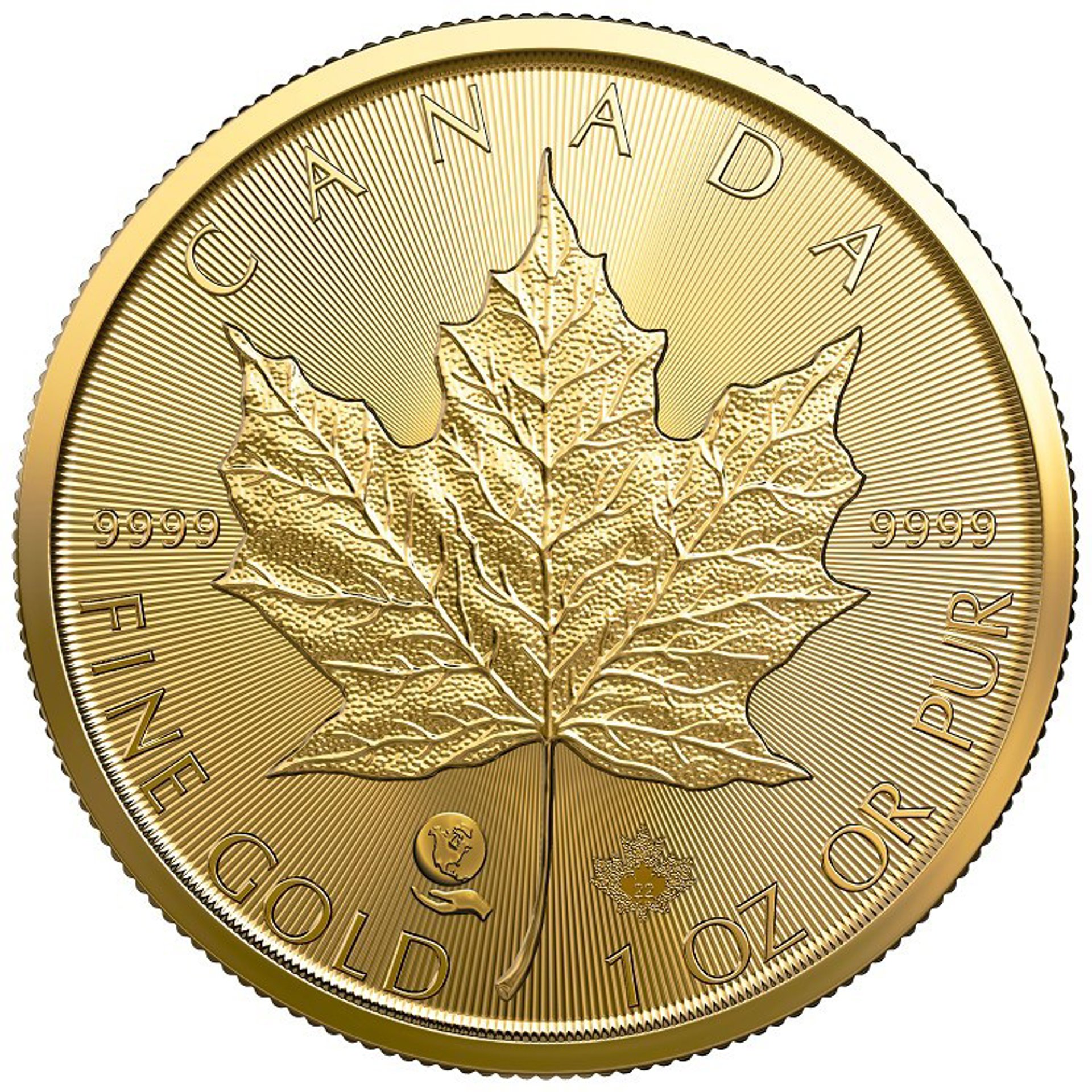 El reverso de la primera moneda de oro puro extraído de una sola fuente de Mint presenta el detallado grabado de Walter Ott de una hoja de arce, el sello distintivo de la familia de monedas de lingotes de Mint. Este diseño central también está rodeado por un conjunto de líneas radiales mecanizadas con precisión. Debajo aparece una marca de seguridad en forma de hoja de arce micrograbada que contiene el grabado del número "22", sólo visible con lupa, para indicar el año de emisión de la moneda. Junto a la marca de seguridad se encuentra el símbolo de una mano sosteniendo un globo terráqueo, que simboliza la procedencia del 99,99% de oro puro de la moneda. La moneda también está protegida por la tecnología Bullion DNATM.