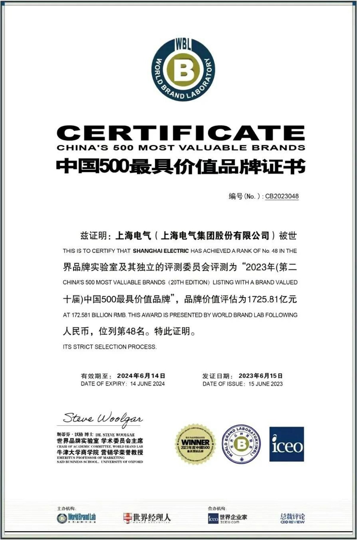Shanghai Electric Named One of China's 500 Most Valuable Brands by World Brand Lab