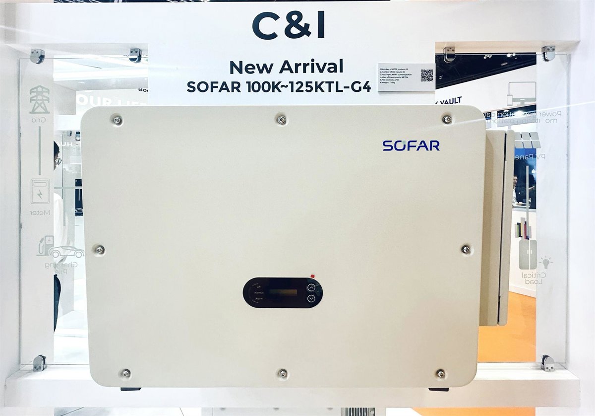 SOFAR ha presentado su último inversor monofásico 100-125KTL-G4, optimizado para aplicaciones C&I y de energía solar a pequeña escala, que integra una corriente ultraelevada líder en el sector, una instalación sencilla y una protección inteligente. El producto se caracteriza por sus MPPT múltiples de 10*40A y su corriente ultraalta, perfectamente compatible con módulos de alta potencia y diversos diseños de tejado, lo que garantiza un menor LCOE y un mayor rendimiento. Con un peso inferior a 75 kg, el inversor es fácil de instalar sin costes de mano de obra adicionales. Además, la plataforma de monitorización en la nube permite una operación y mantenimiento sin complicaciones. El inversor también está disponible para AFCI y escaneo de curvas I-V, y tiene protección IP65 junto con anticorrosión C5, que es resistente a las duras condiciones en MEA.
