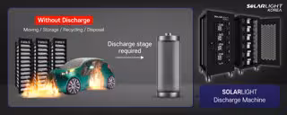 Used battery has a higher risk of fire and explosion; discharging process is essential stop to ensure safety upon transport, storage, reprocessing and disposal. - SOLARLIGHTKOREA(CO.,LTD)/PR NEWSWIRE