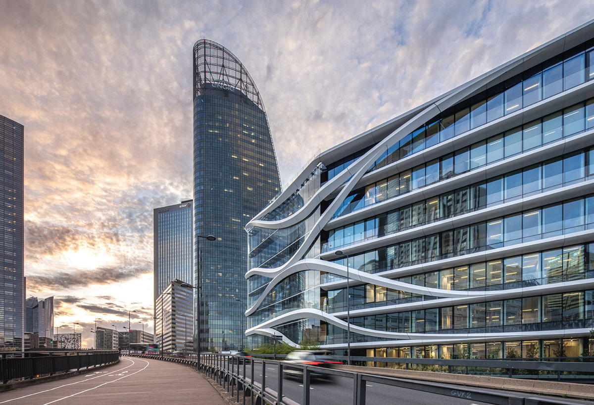 Los arquitectos de STUDIOS Architecture diseñaron cintas que fluyen a lo largo de la fachada de Latitude, creando una identidad orgánica y horizontal que añade dinamismo al paisaje ultraurbano y tradicionalmente vertical del distrito. Su posición estratégica con vistas a la carretera de circunvalación y su diseño inclusivo y ecológico ya han establecido a Latitude como un nuevo hito urbano y una parte integral de la renovación de París-La Défense.