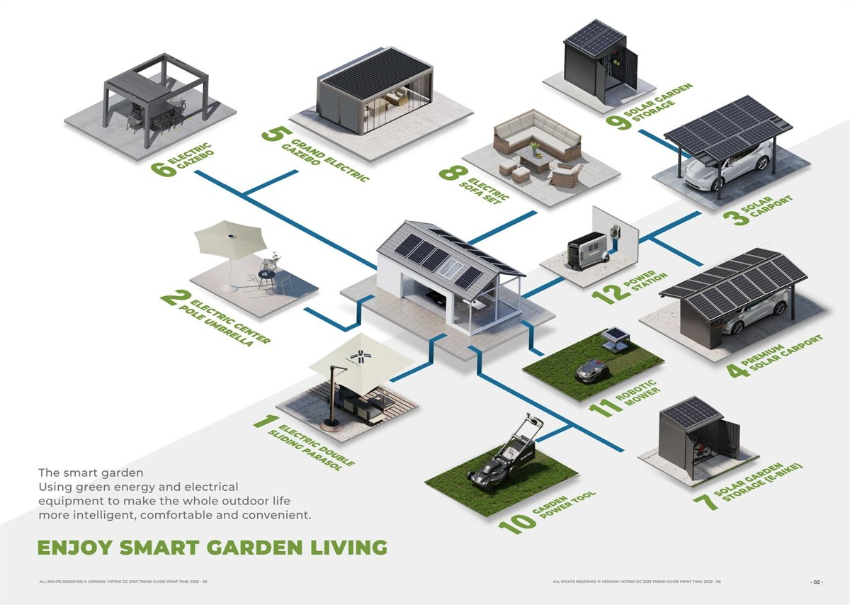 Como parte de una nueva revolución energética, esta solución utiliza ingeniosamente paneles solares y una central eléctrica como eje central, transformando el jardín en un ecosistema de circuito cerrado que genera energía renovable limpia, almacena energía y alimenta herramientas y muebles de jardinería eléctricos.