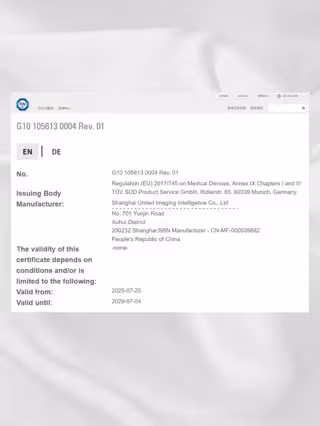 Además de la certificación CE, UII también ha obtenido 15 autorizaciones de la FDA de EE.UU. y 15 aprobaciones de Clase III de la NMPA de China. El cumplimiento de los estándares regulatorios más rigurosos del mundo demuestra la preparación global de UII y allana el camino para una adopción más amplia de la IA médica en todo el mundo.