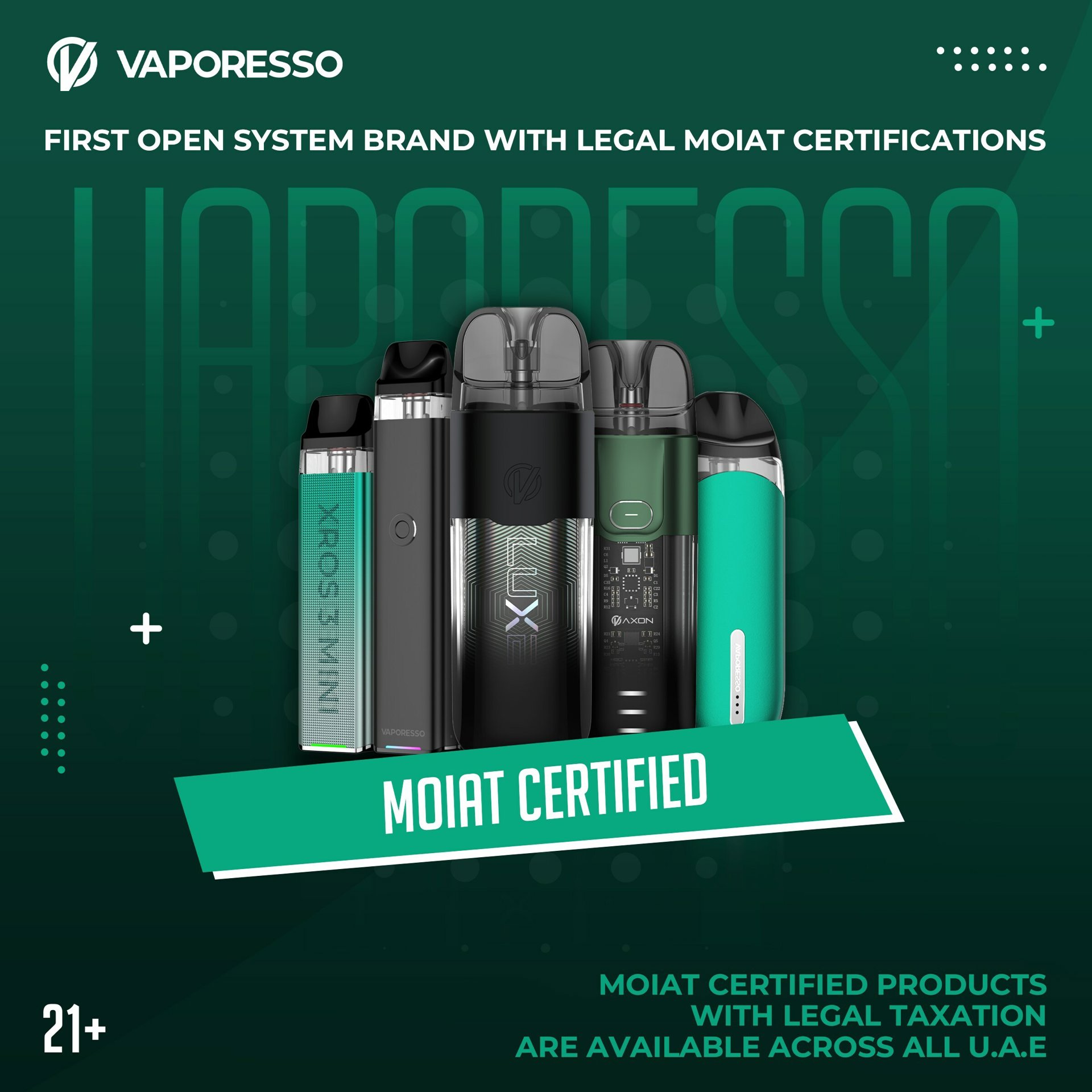 SHENZHEN, China, 12 de septiembre de 2023 /PRNewswire/ -- VAPORESSO, la marca líder en la industria del vapeo, ha anunciado con orgullo su logro como la primera marca de cigarrillos electrónicos registrada con licencia del Ministerio de Industria y Tecnología Avanzada (MoIAT) de los Emiratos Árabes Unidos (EAU) para vender en el país. Después de casi un año de planificación y aplicación estratégicas, VAPORESSO ha recibido con éxito la certificación MoIAT para más de 10 modelos de sus productos, incluidos LUXE XR, XROS 3 MINI, XROS 2, XROS 3, XROS MINI, XROS NANO, ZERO S, LUXE X, LUXE QS, OSMALL 2 y GEN PT 60.
