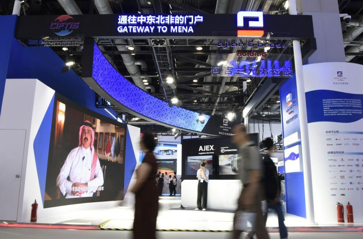 Visitors walk past the booth of Ajlan & Bros. Holding during the 2023 China International Fair for Trade in Services (CIFTIS) at China National Convention Center in Beijing, capital of China, Sept. 4, 2023. - XINHUA SILK ROAD/PR NEWSWIRE